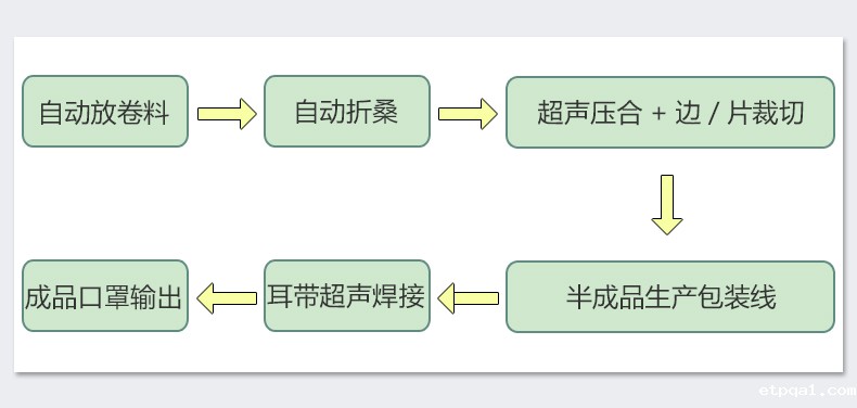 可根据生产工艺及市场需求自由选配生产3到6层KN95口罩。从 无纺布 ▶口罩成型 ▶口罩切断分离 ▶ 口罩耳带焊接▶ 全自动完成。个性化人机界面,参数化速度控制,一键提速化繁为简,操作简单。